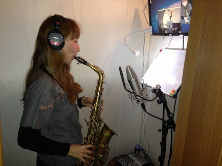 この写真は歌ものの楽曲をレコーディングした際、我々のスタジオでアルトサックスを録音した時のものです。